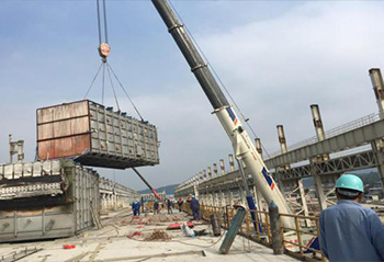 2017年9月18日福建彩神上克不锈钢有限公司冷酸炉壳吊装就位,,,,,,,,标志着冷酸线安装施工开始。。。。。。